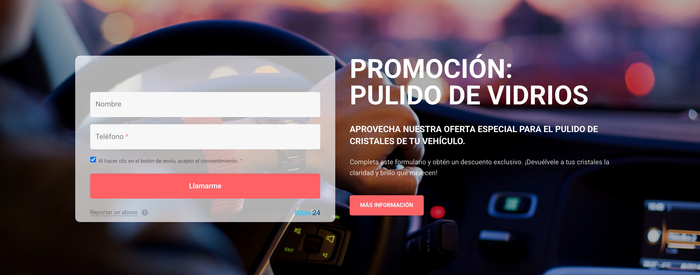 Como ejemplo, un taller mecánico ofrece una promoción de pulido de cristales. Un cliente envía una solicitud a través del sitio web, proporcionando sus datos de contacto. El agente contacta al cliente para confirmar un horario conveniente y reserva el espacio correspondiente en el calendario, asignando tanto el tiempo del técnico como el box de servicio disponible.