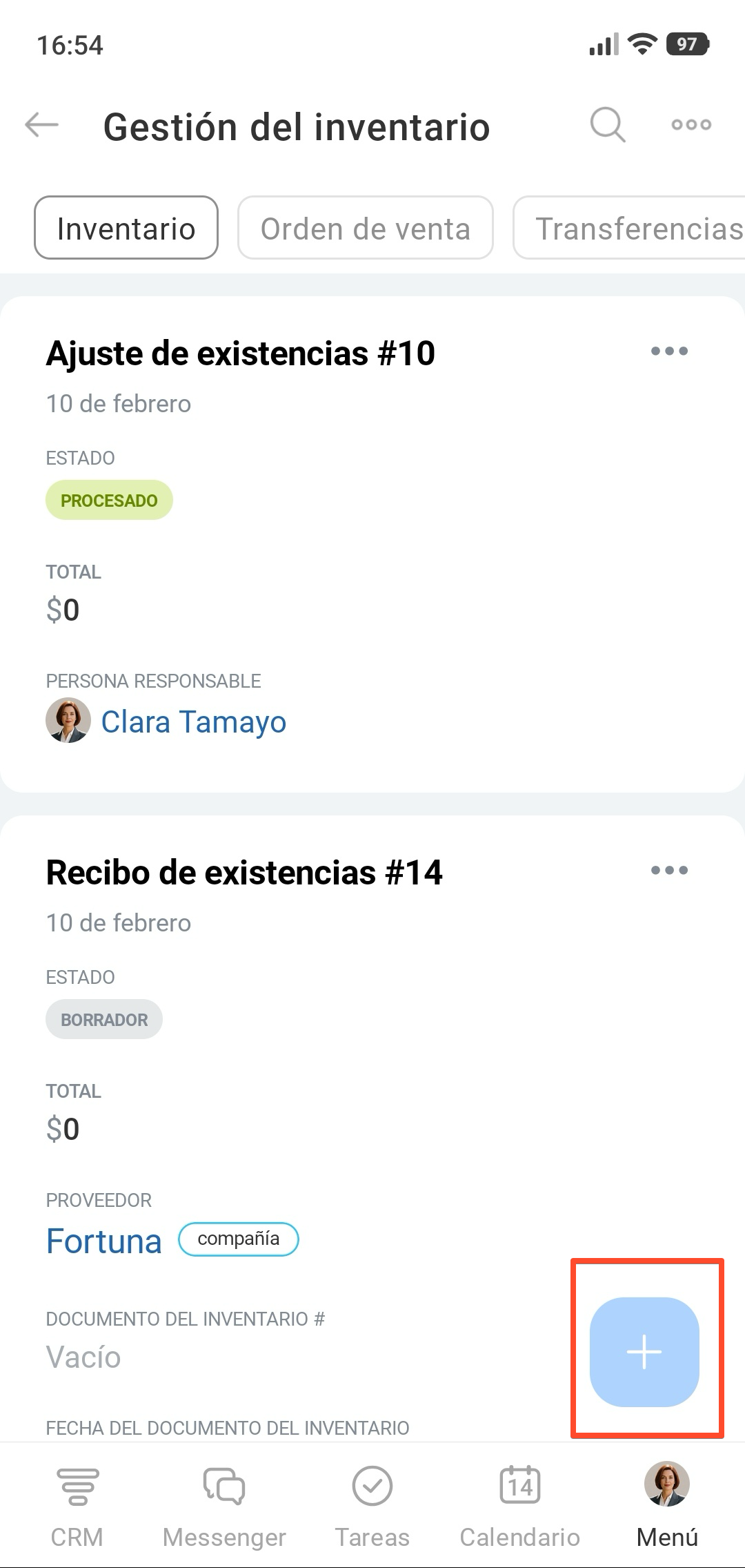 Gestión del inventario en la aplicación móvil