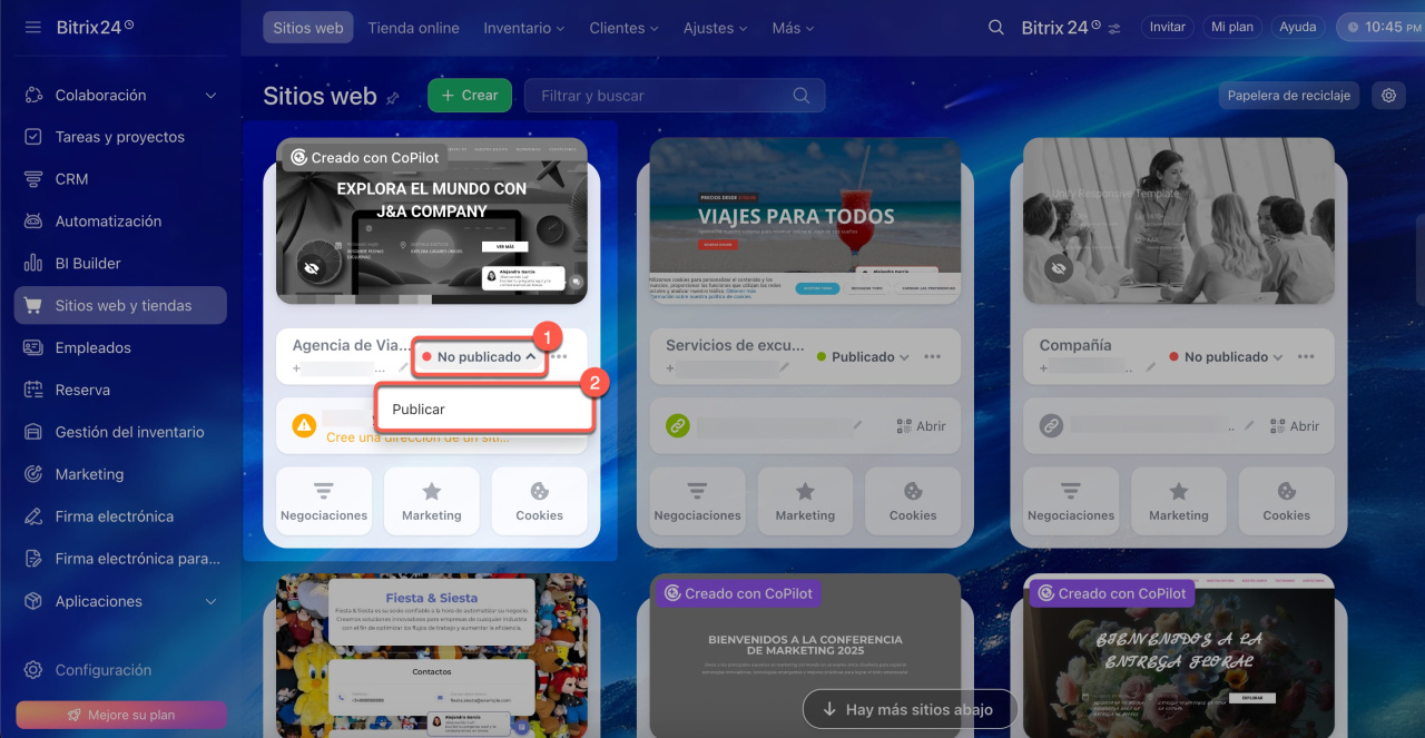 Los cambios en un sitio web se guardan automáticamente al editarlo. Si no ve los cambios aplicados, haga clic en la flecha junto al estado, despublique el sitio web y vuelva a publicarlo.