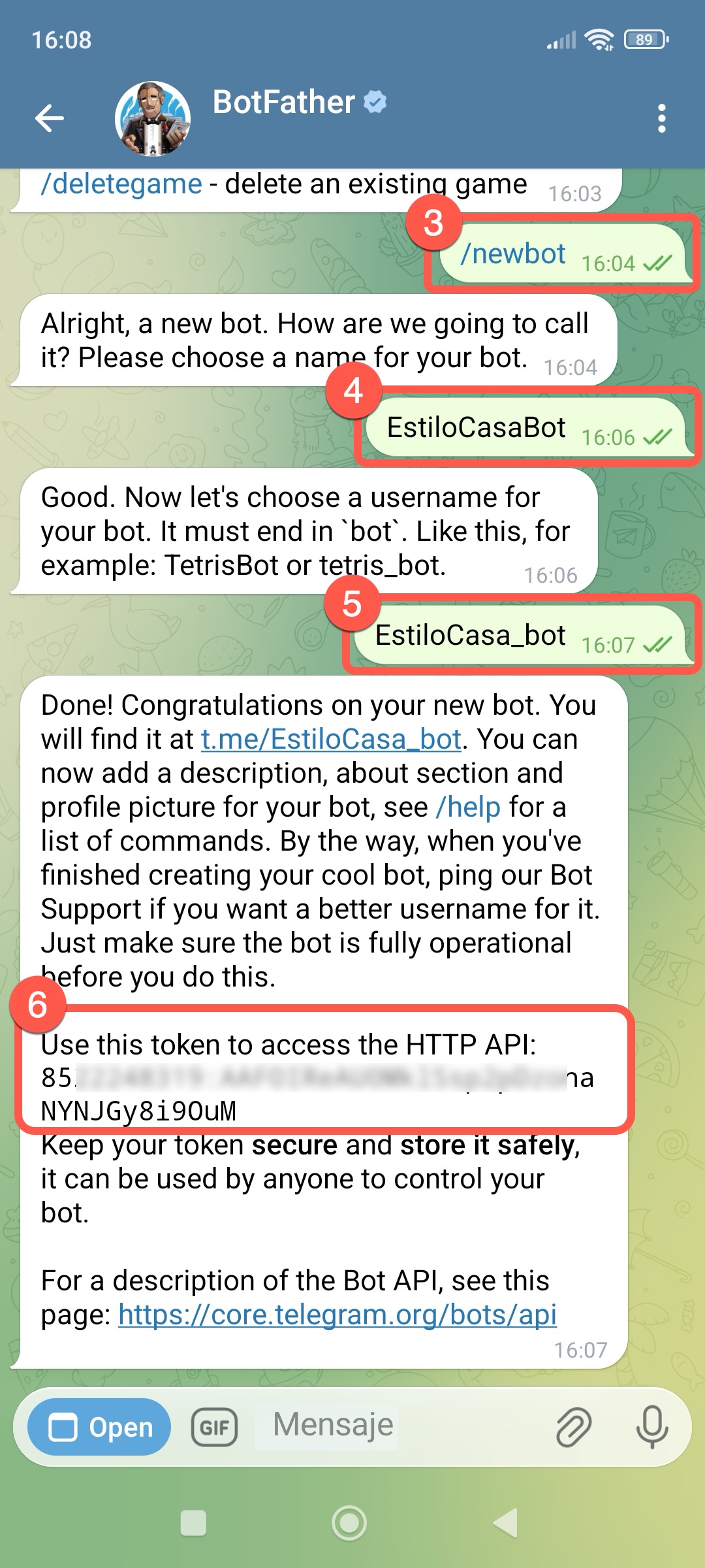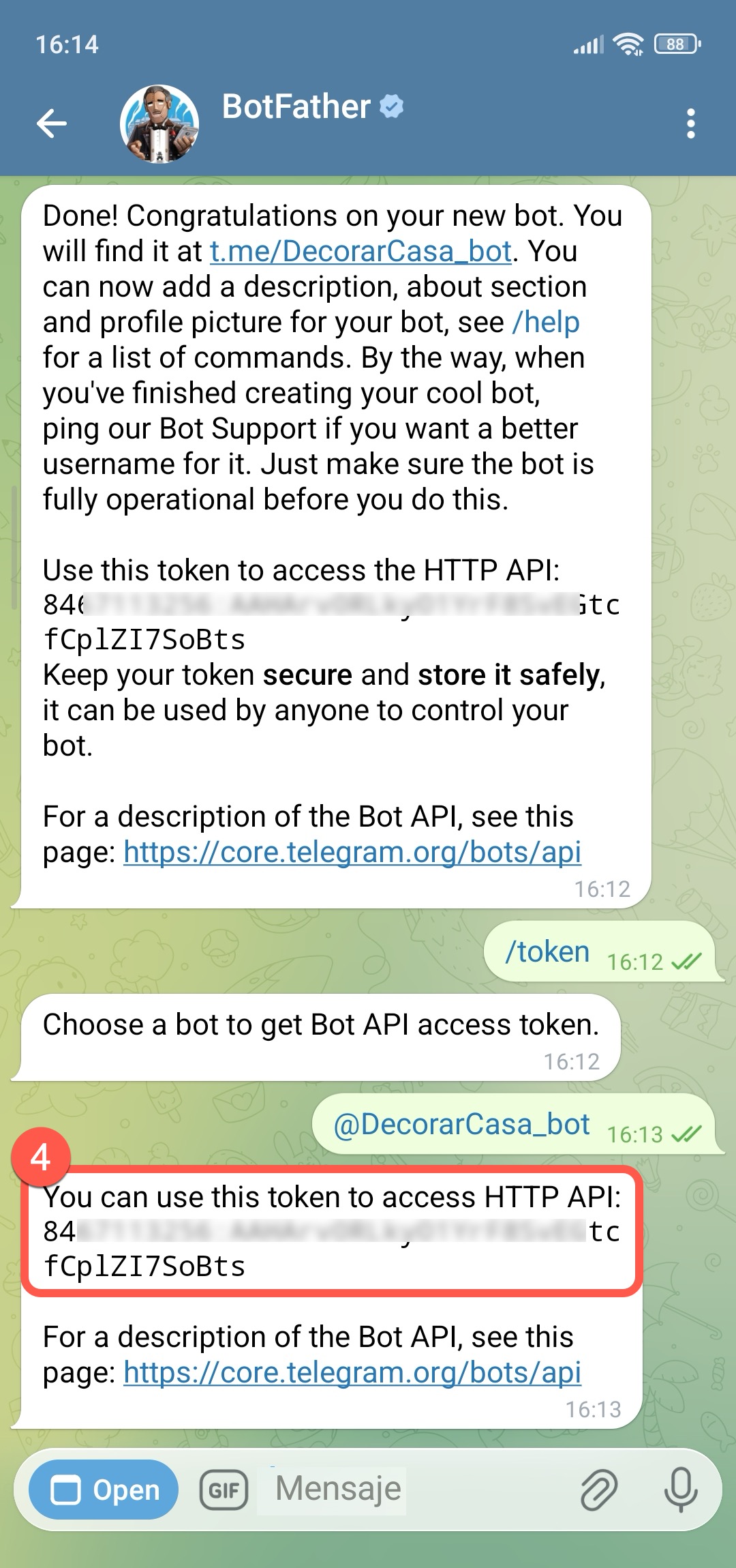 Si aún no tienes un bot de Telegram, crea uno nuevo. Si ya tienes un bot, copia su token.