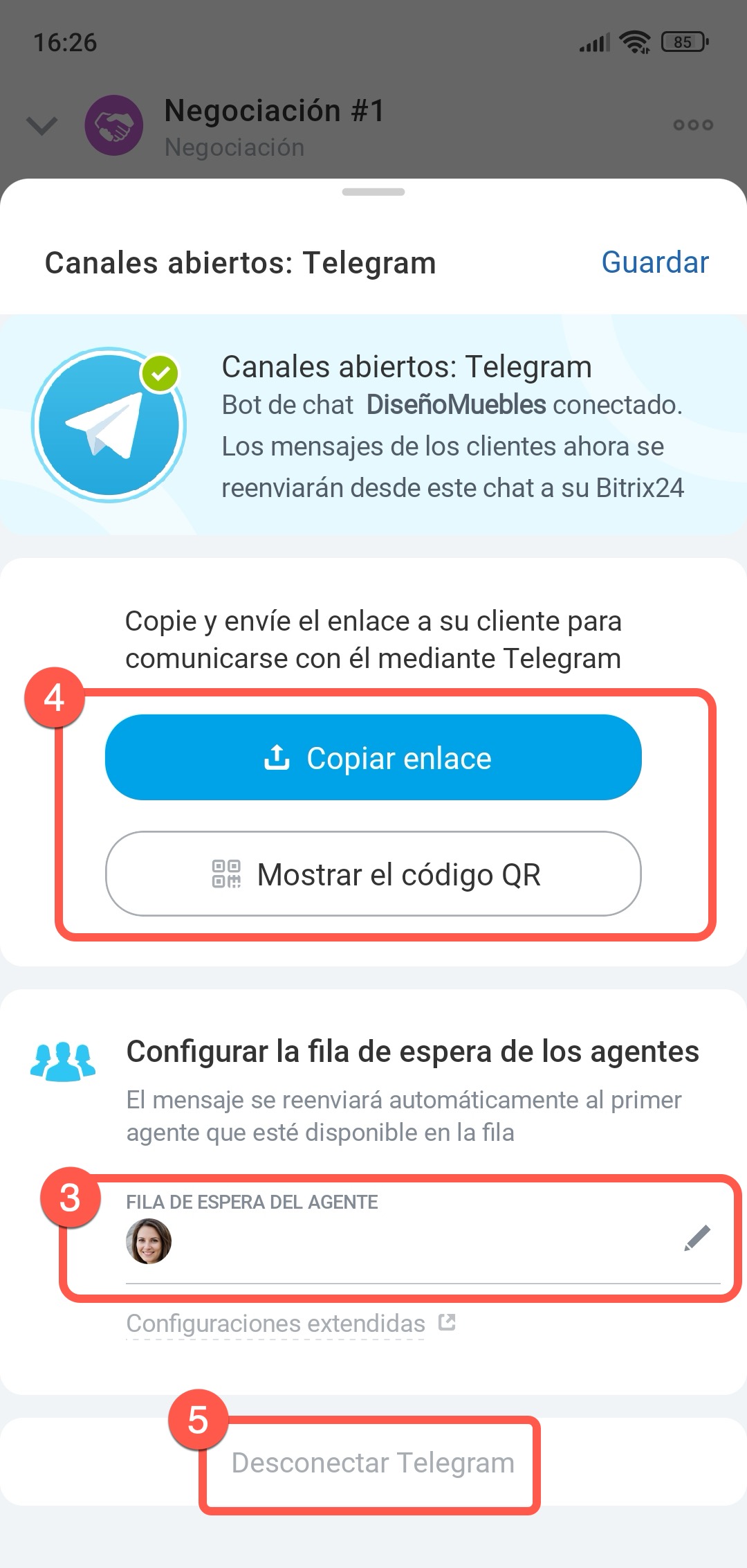 5. Si ya no necesitas el bot de Telegram o deseas conectar otro, toca Desconectar Telegram.