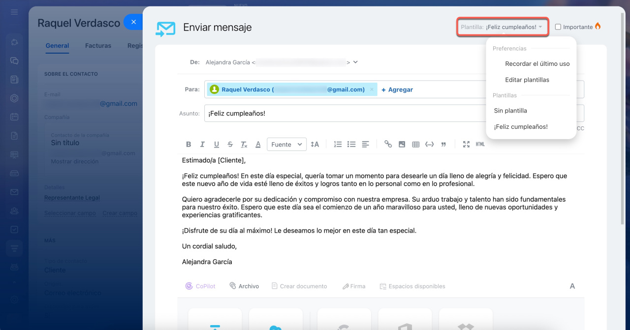 - Utiliza plantillas de correo electrónico si sueles enviar mensajes similares a tus clientes.