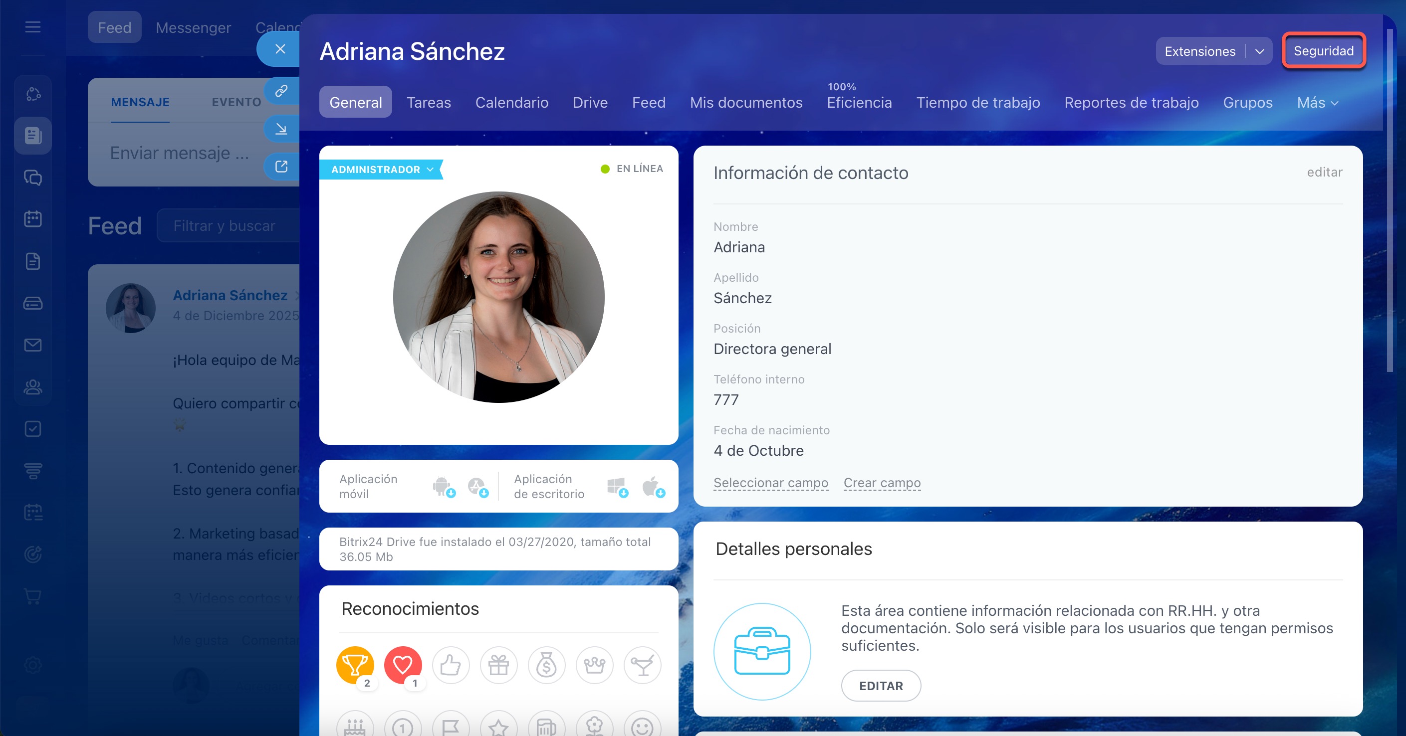 Abre tu página de perfil y haz clic en Seguridad en la esquina superior derecha.