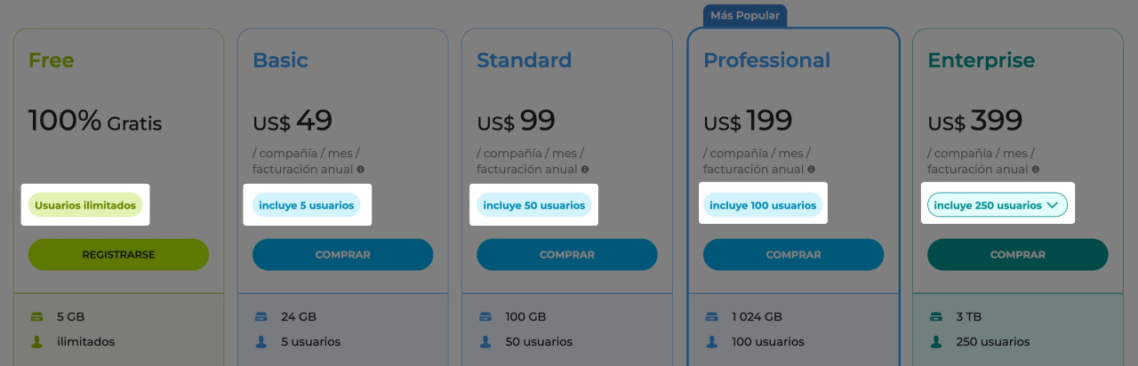 - Professional: 100 usuarios