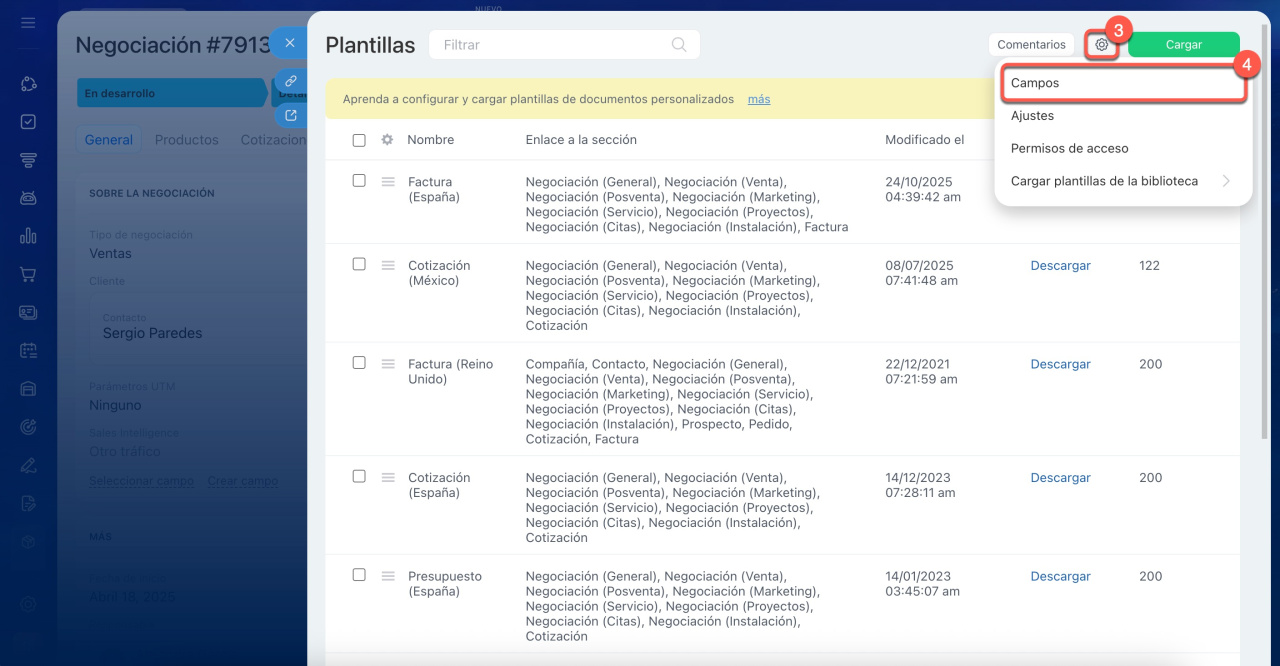 Configurar plantillas de documentos en CRM
