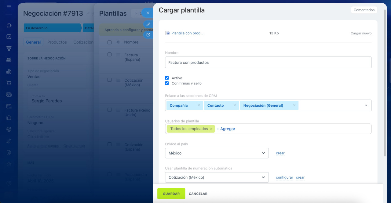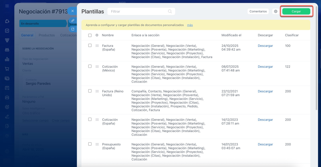 Una vez creada tu plantilla personalizada, puedes cargarla a CRM.