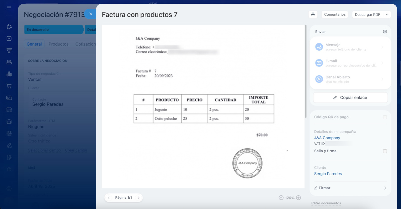 En Bitrix24, hay un conjunto de plantillas de documentos estándar para facturas y cotizaciones. Si una plantilla estándar no cumple con los requisitos de tu empresa o le faltan algunos datos, puedes editarla o crear una propia personalizada.
