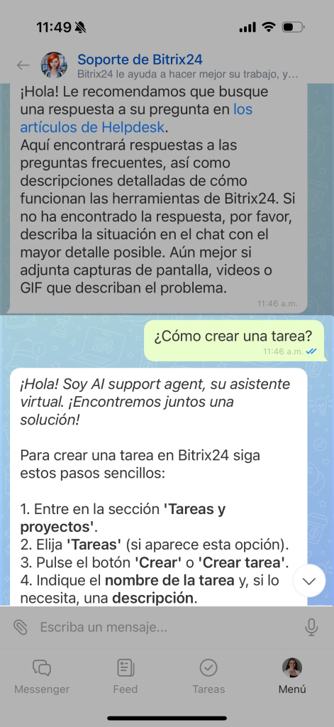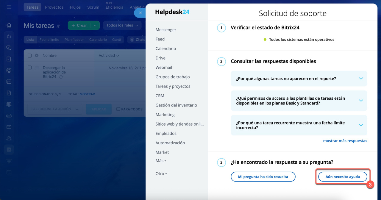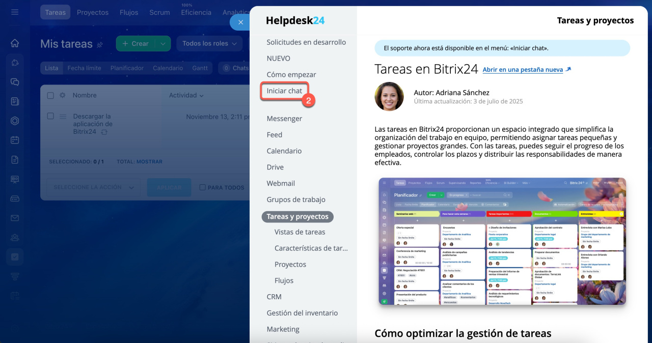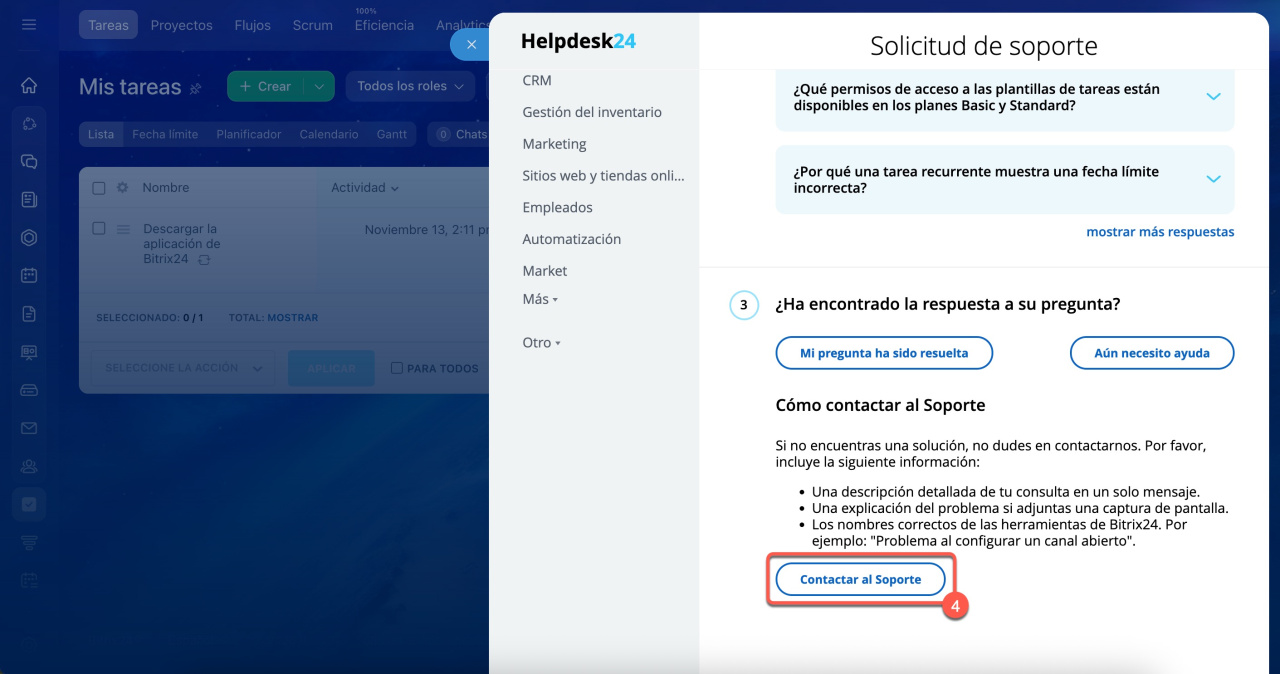 - Si necesitas ayuda sobre cómo usar Bitrix24, el chat de soporte está disponible para orientarte.