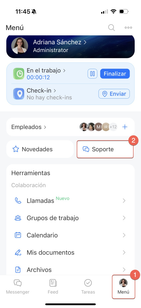 - Puedes contactar al equipo de soporte tanto desde la versión web como desde la aplicación móvil de Bitrix24.