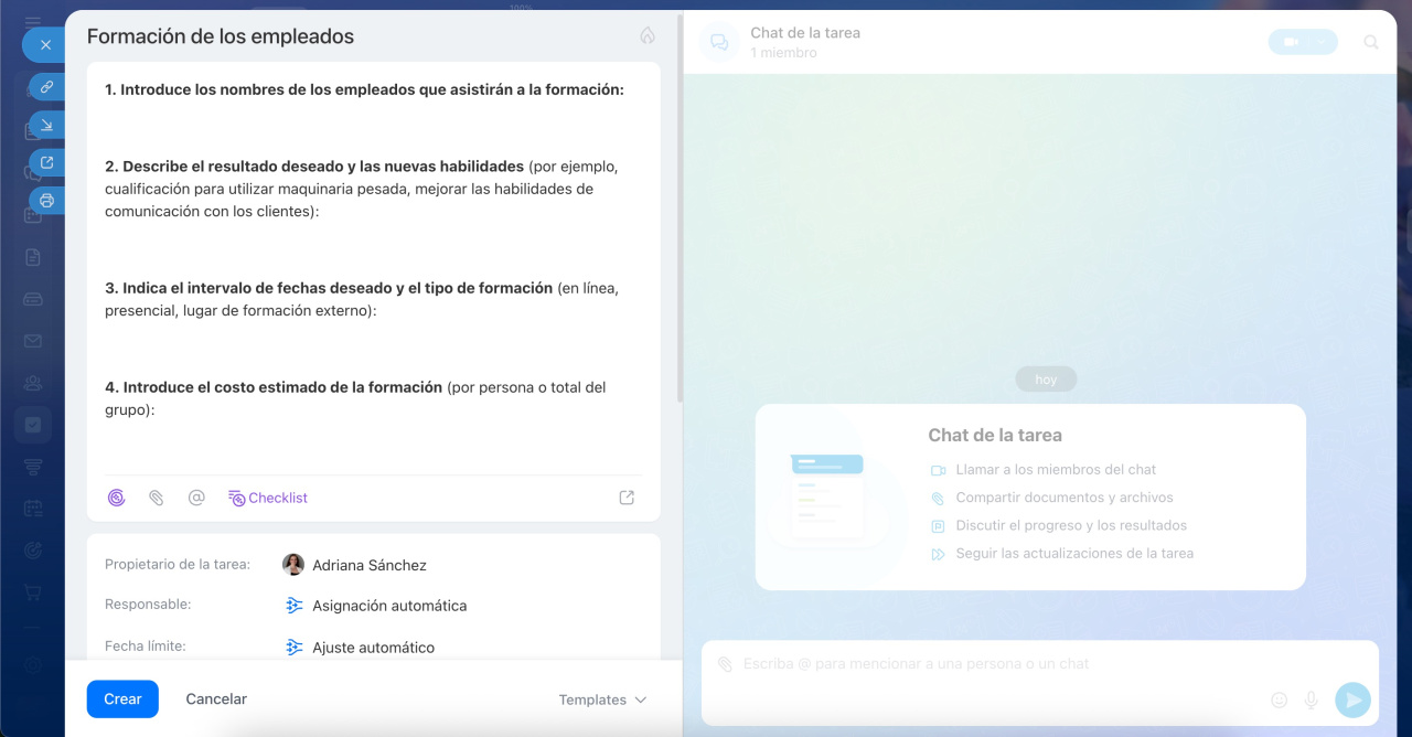 Si un flujo cuenta con plantillas de tareas configuradas, los empleados solo necesitarán completar los campos