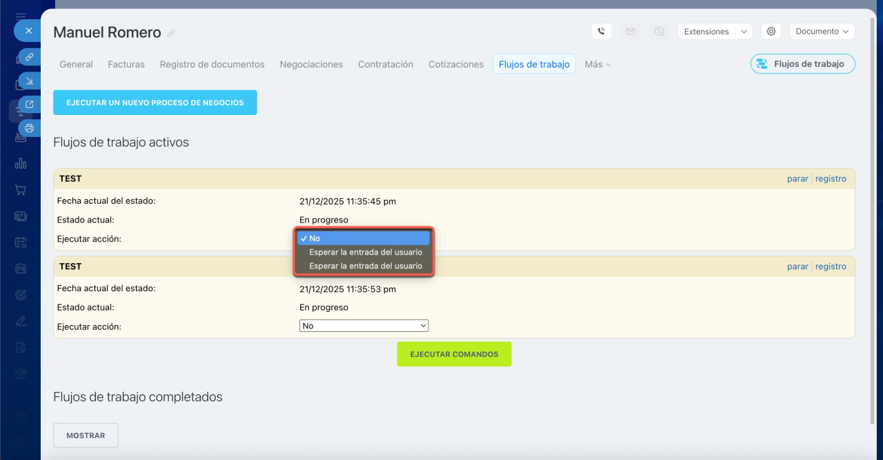 Esta acción te permite cambiar el estado del flujo de trabajo.