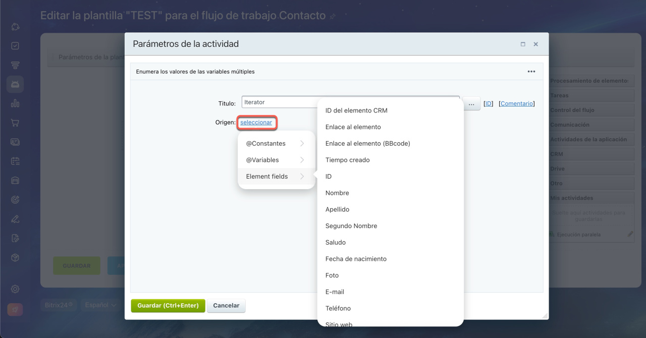 En la versión de Bitrix24 Nube, el ciclo tiene un límite de 1000 iteraciones.
