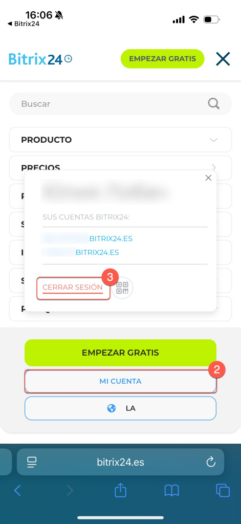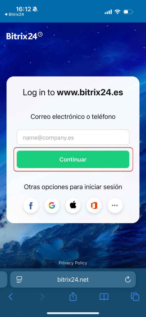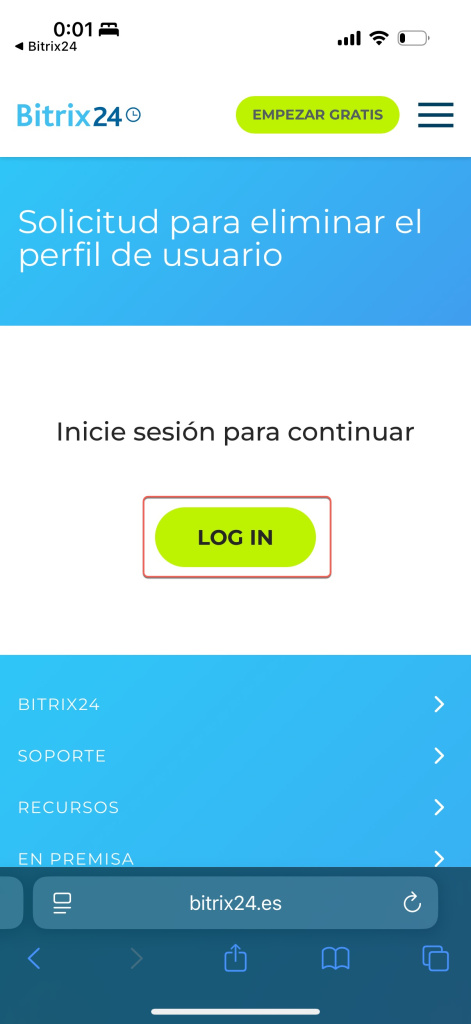 - Inicia sesión en la aplicación móvil de Bitrix24 con la cuenta que deseas eliminar.