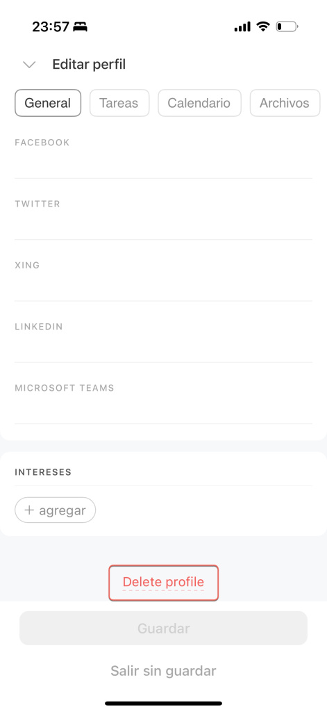 Puedes eliminar un perfil solo en la aplicación móvil de Bitrix24 para iOS o Android. Si eres el único administrador, transfiere los derechos a otro usuario; de lo contrario, tu Bitrix24 será eliminado.