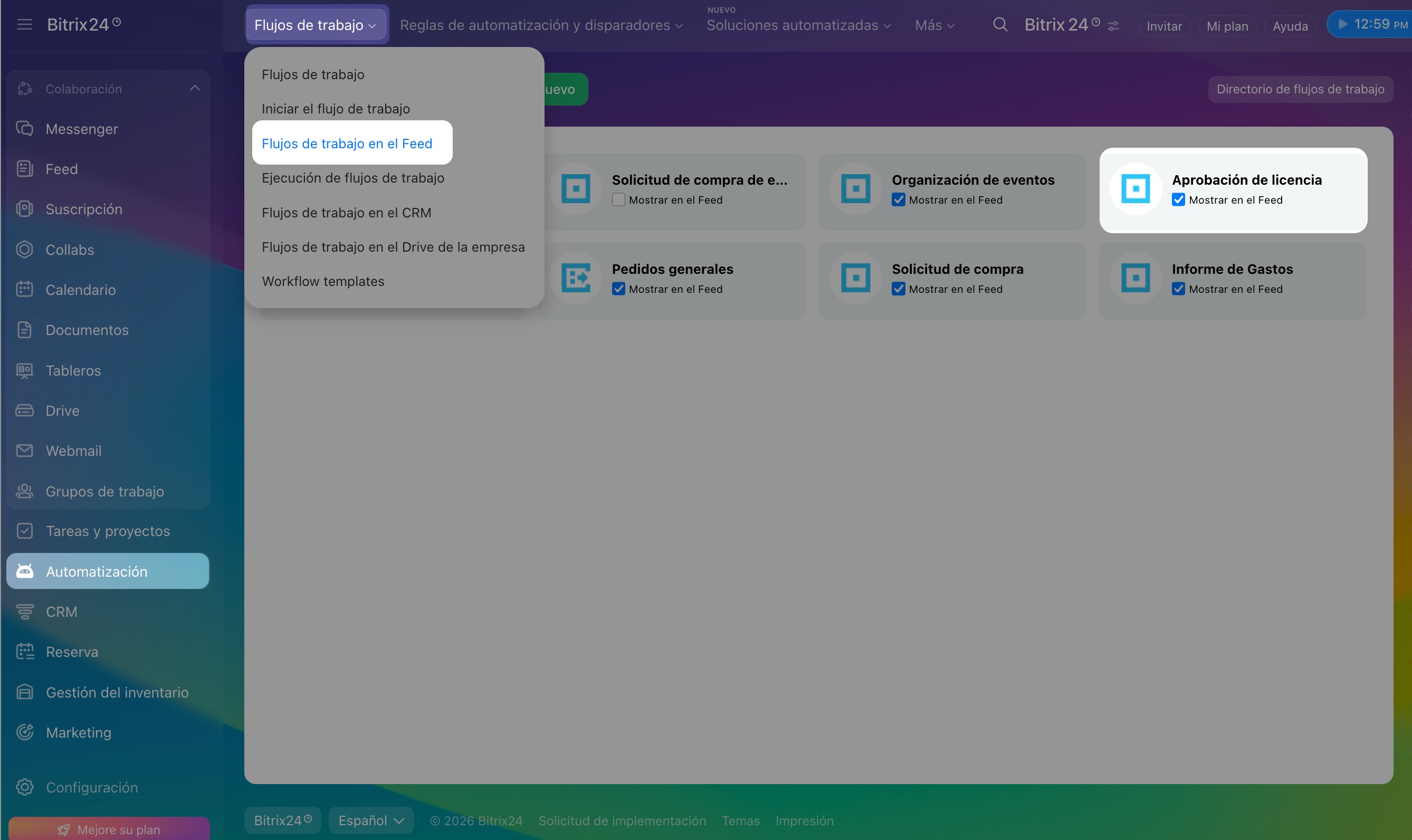 Ve a la sección de Automatización > Flujos de trabajo > Flujos de trabajo en el Feed > abre el formulario del flujo de trabajo requerido.