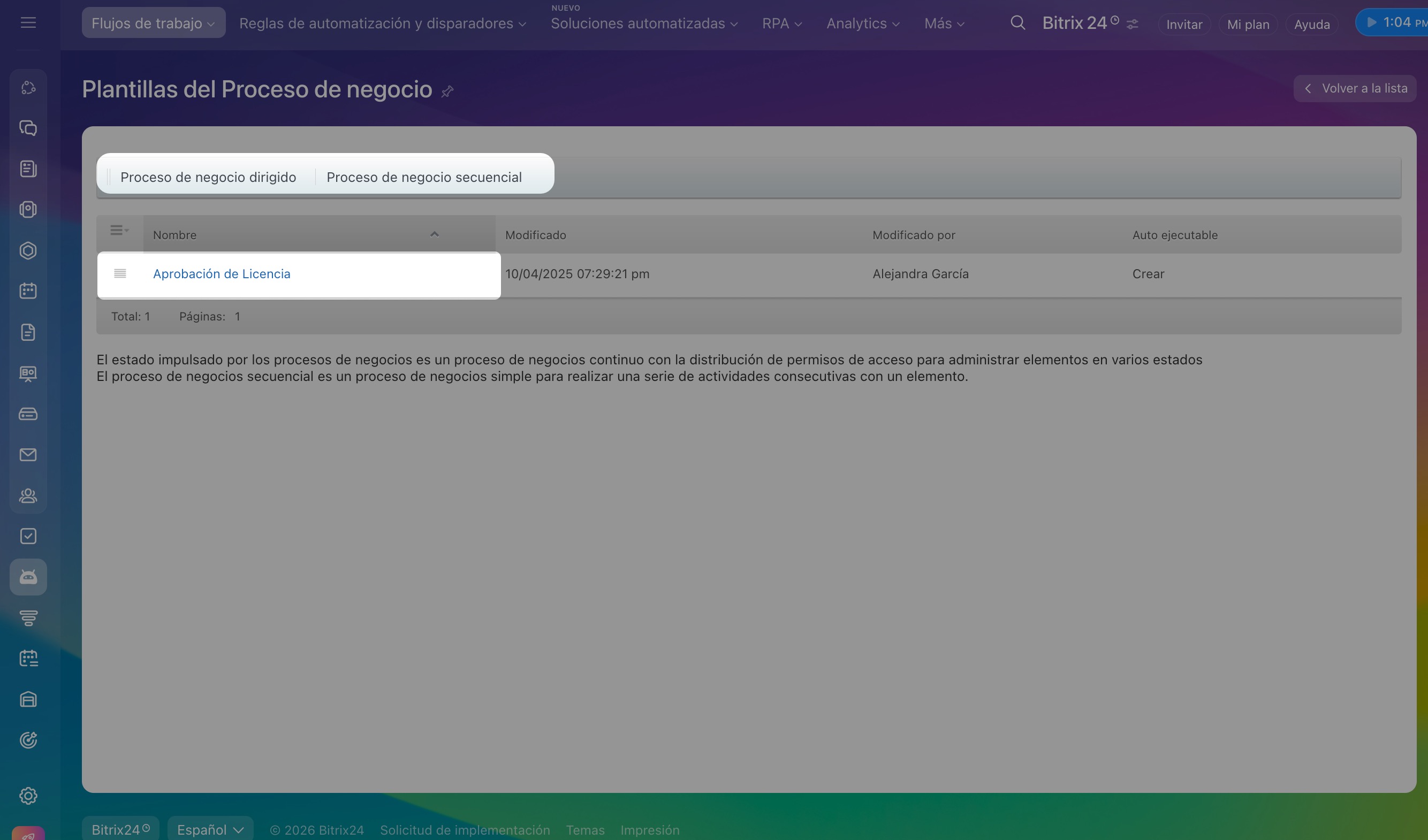 Crear una plantilla de proceso de negocio secuencial