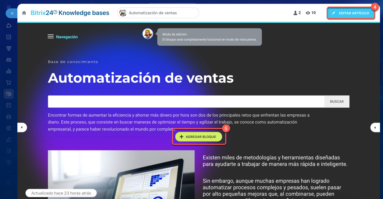 4-5. Haz clic en Editar artículo > Agregar bloque.