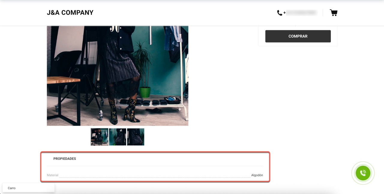 Tras realizar esta configuración, la información aparecerá en la página detallada del producto.