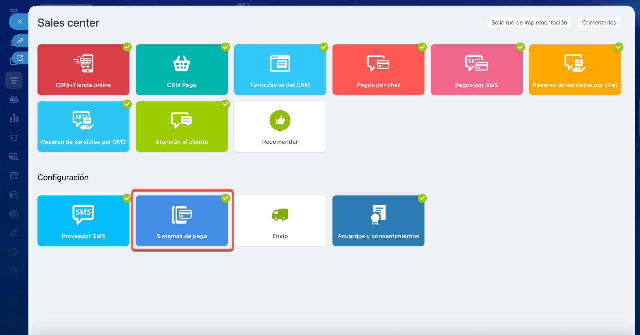 Conectar sistemas de pago en Sales Center