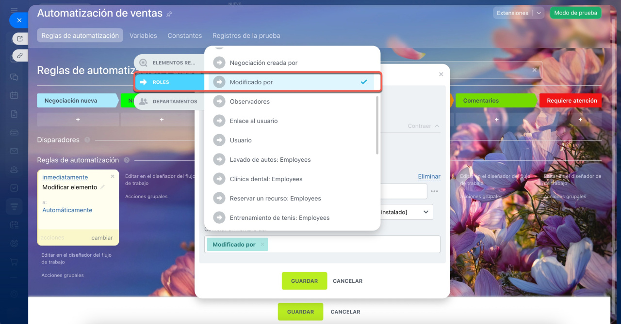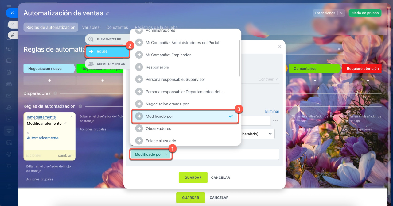 Solución. Para garantizar que las reglas de automatización y los flujos de trabajo funcionen correctamente, asegúrate de especificar en el campo Cambiar en nombre de el rol Modificado por en la configuración de todas las reglas y flujos que modifican datos del elemento de CRM.