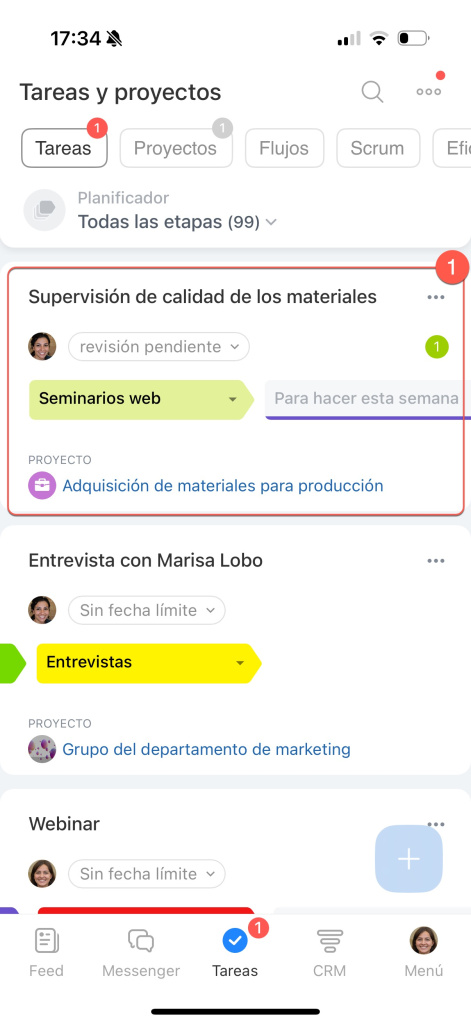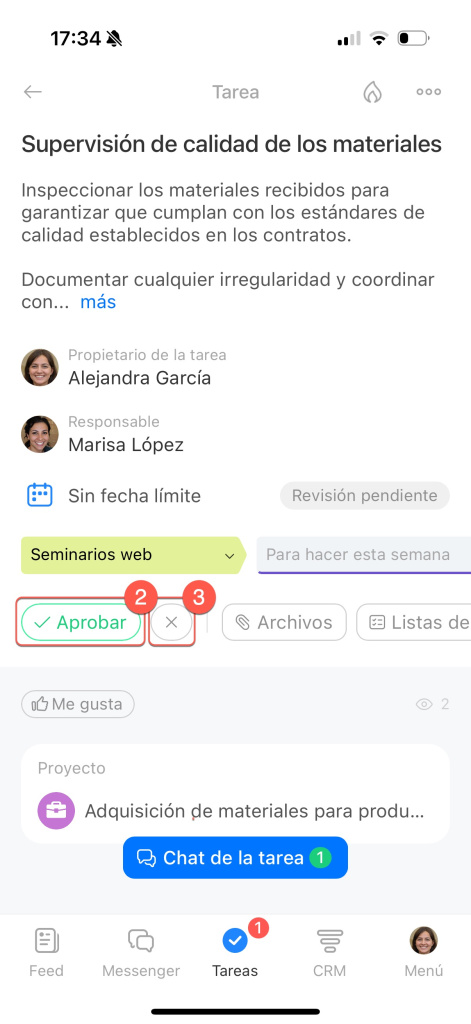 - Una vez que el responsable complete la tarea, el creador recibirá una notificación y podrá aceptar el resultado o enviarla a revisión.