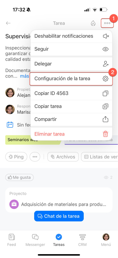 1-2. Abre la tarea correspondiente y toca Tres puntos (...) > Configuración de la tarea.