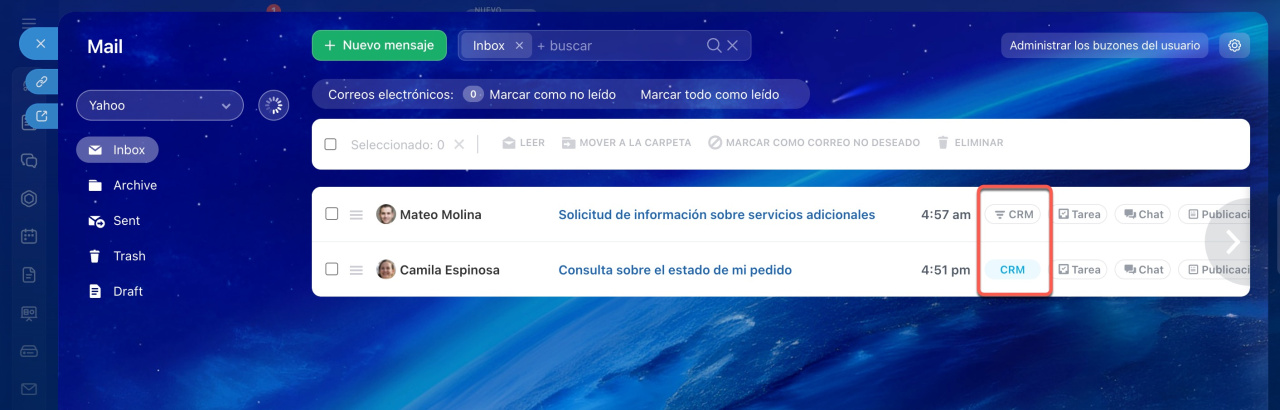 Gestionar correo electrónico en el CRM