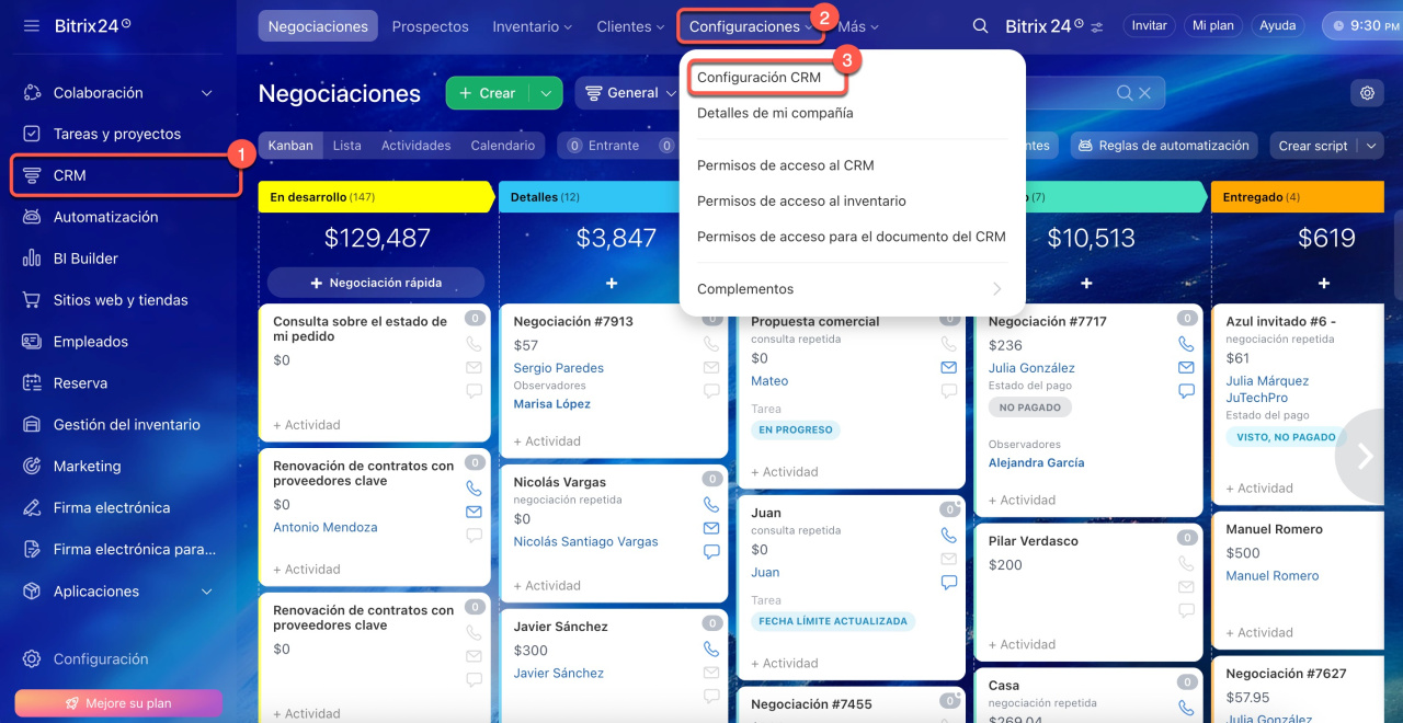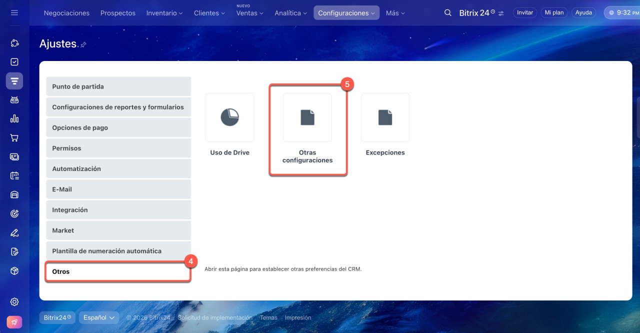 1-3. Ve a CRM > Configuraciones > Configuración CRM.