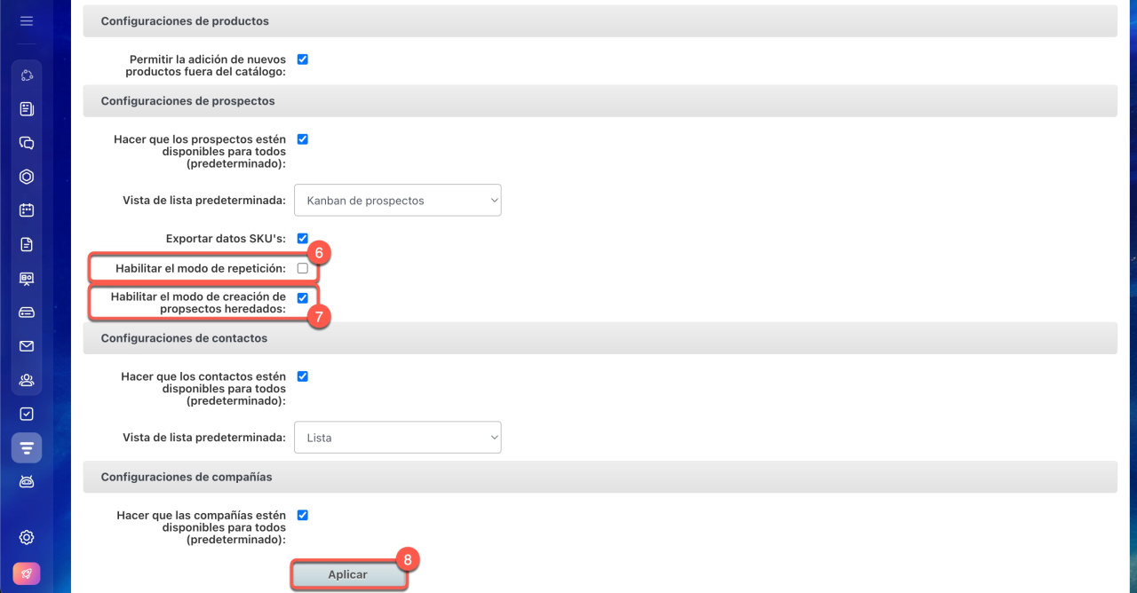 7. Activa la opción Habilitar el modo de creación de propsectos heredados.