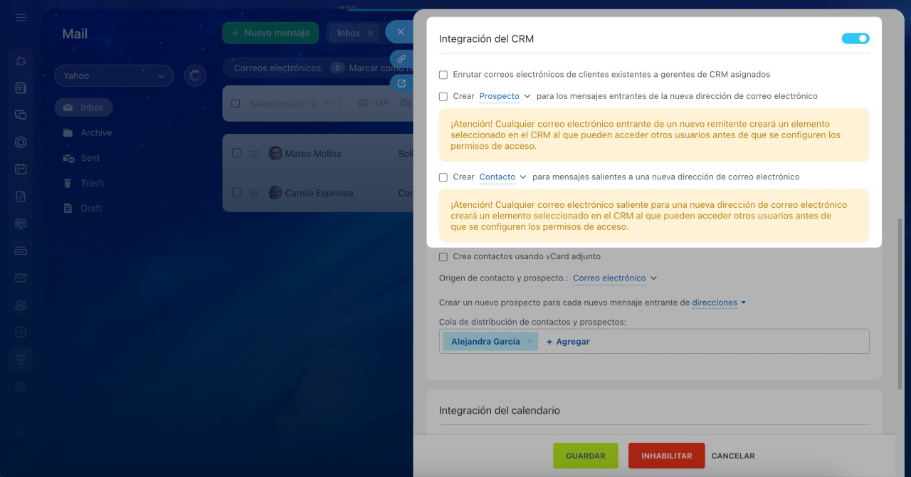 Si no está activada, un empleado con acceso al buzón puede guardar manualmente un correo en el CRM.