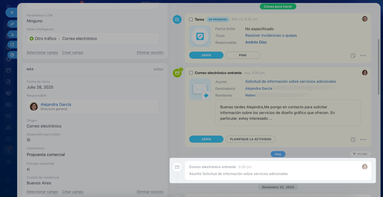 - cuándo se registró el correo en el CRM,
