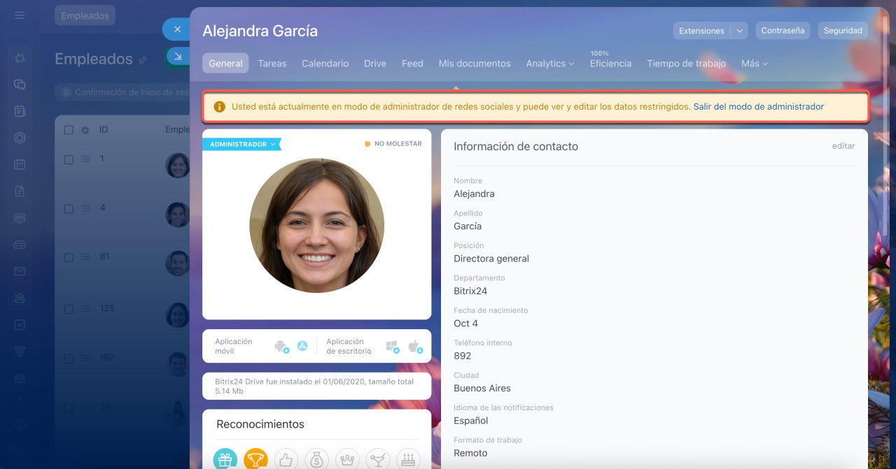 Por defecto, el administrador de Bitrix24 solo puede ver las plantillas de tareas que ha creado él mismo o a las que tiene acceso. Para visualizar todas las plantillas, debe activar el modo administrador.