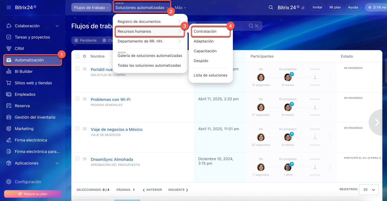 Las soluciones automatizadas son una sección separada para procesos inteligentes fuera de CRM, que permite automatizar el trabajo de cualquier departamento.