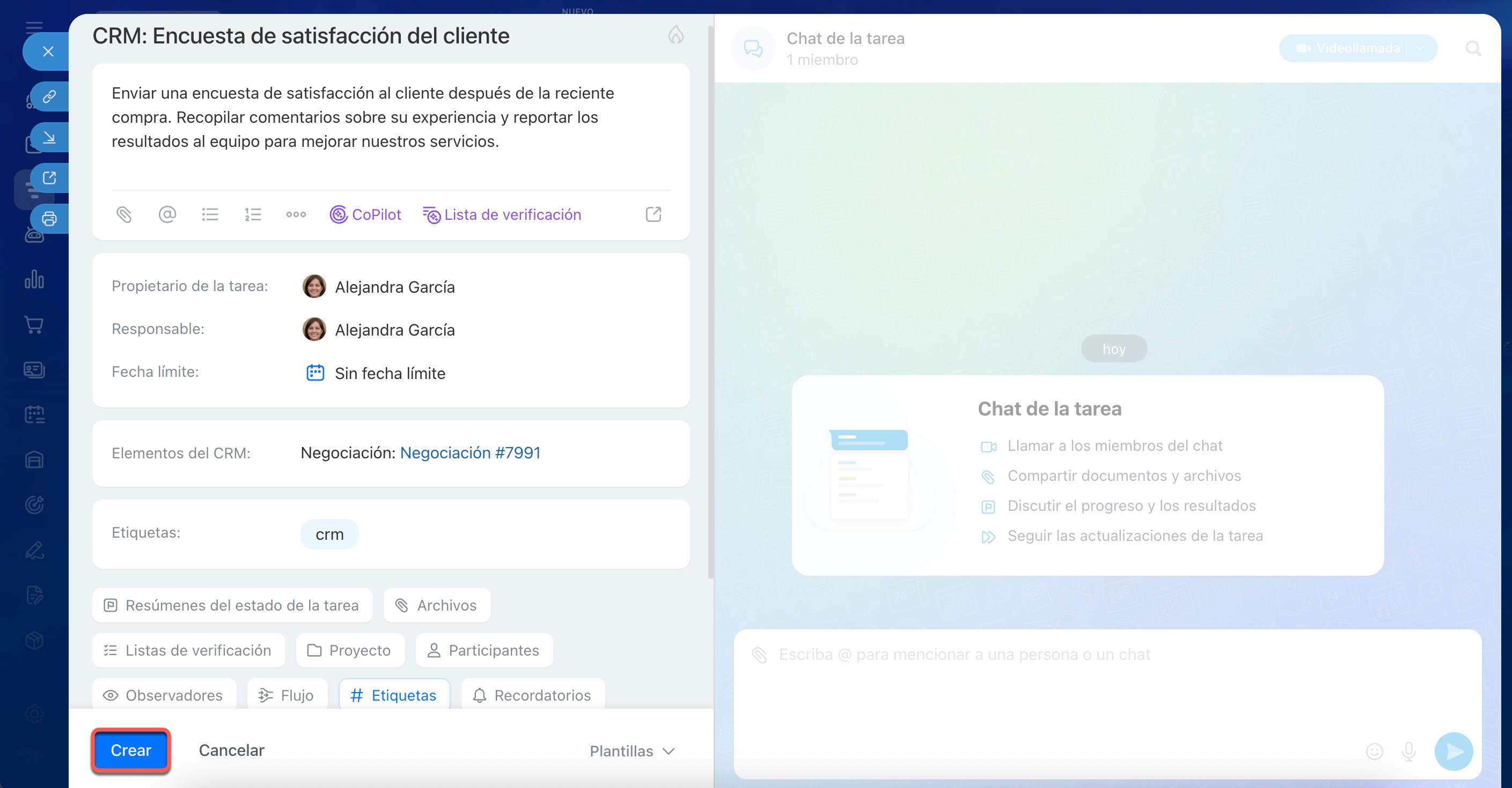 Crear tareas desde la ficha de CRM