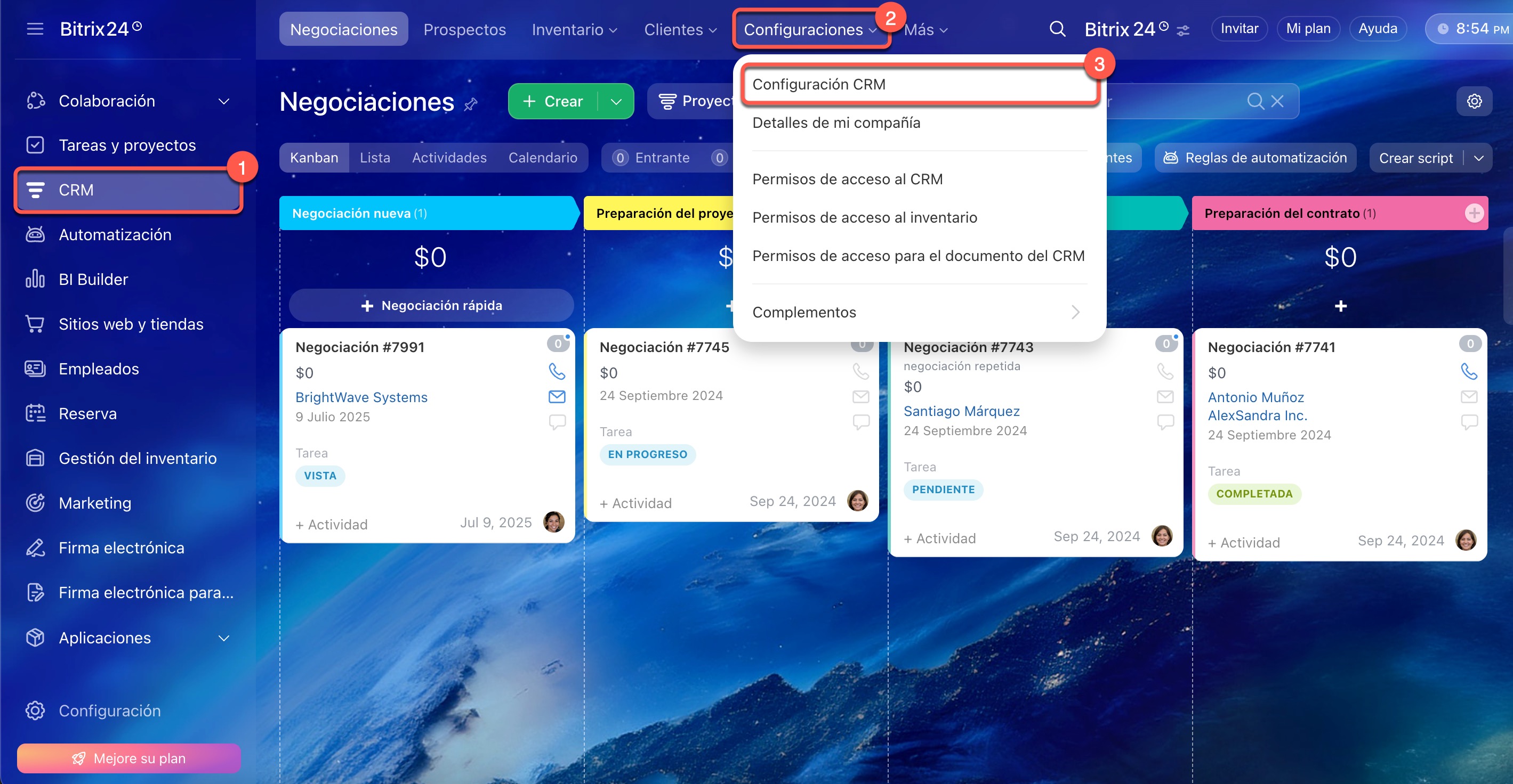 1-3. Accede a CRM > Configuraciones > Configuración CRM.