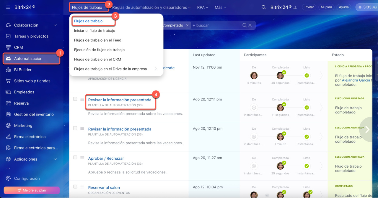 Plantillas de flujos de trabajo. Ve a Automatización > Flujos de trabajo > Flujos de trabajo. Selecciona el flujo de trabajo deseado y abre el informe en la pestaña Acta.