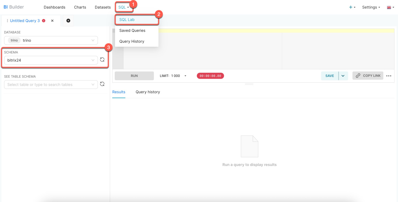 1–2. En el BI Builder, abre la pestaña SQL > SQL Lab.