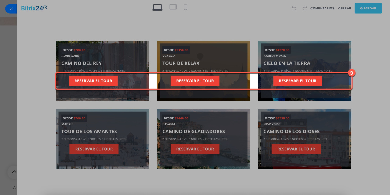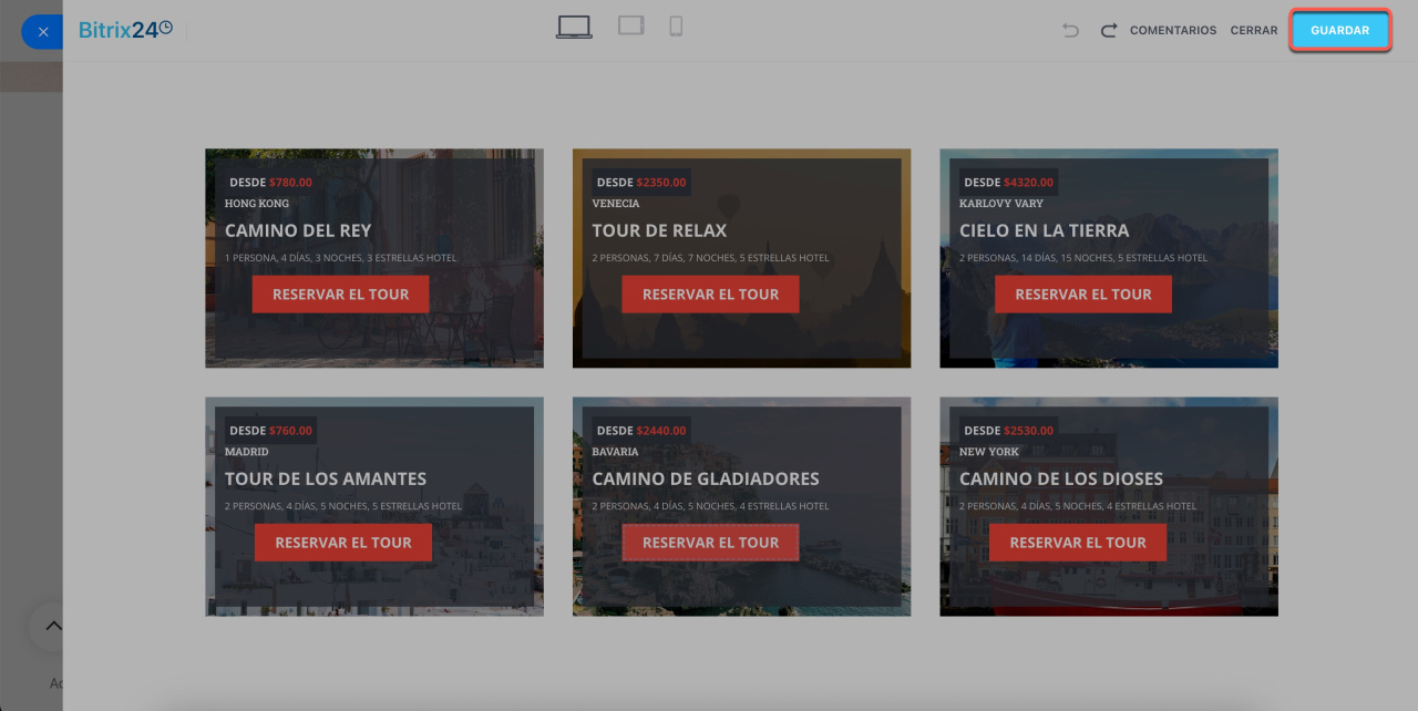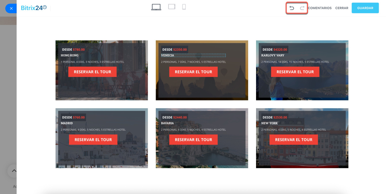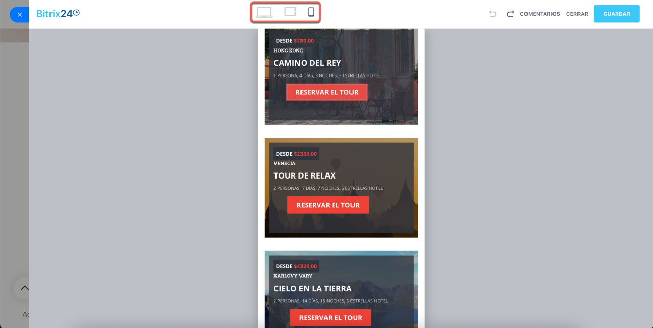 Vista previa. Comprueba cómo se verá tu bloque en diferentes dispositivos (móvil, tableta, escritorio) cambiando el modo de vista en la parte superior del editor.