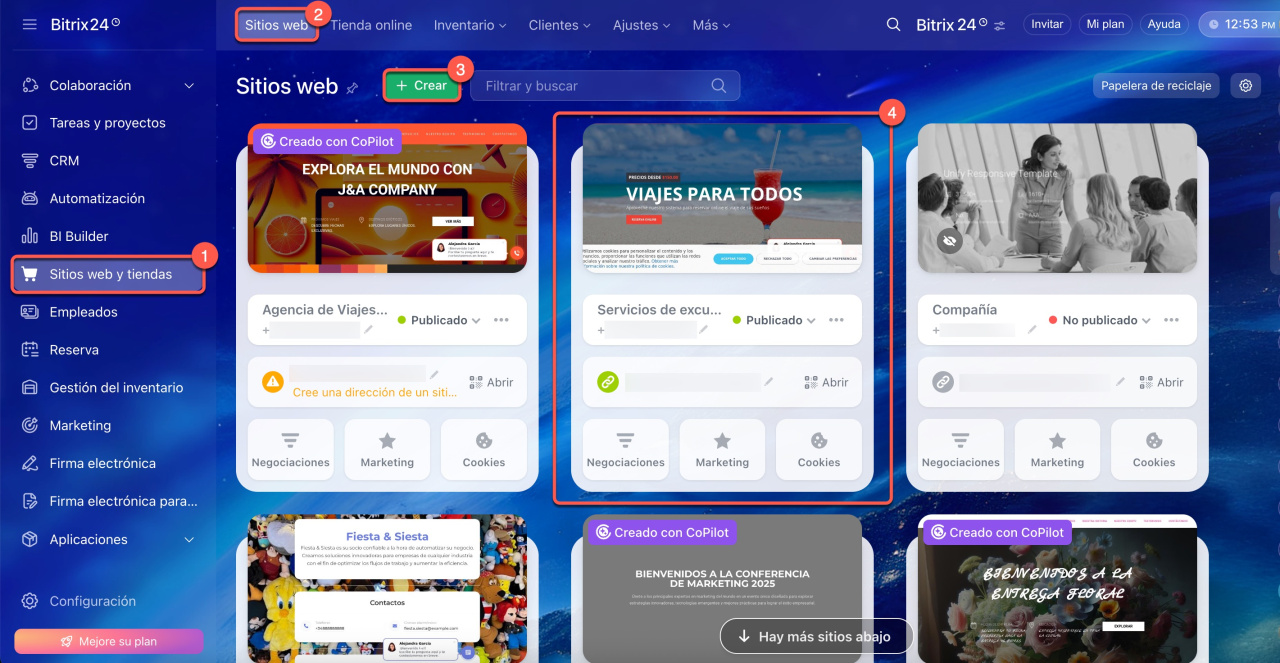 1-2. Accede a Sitios web y tiendas > Sitios web.