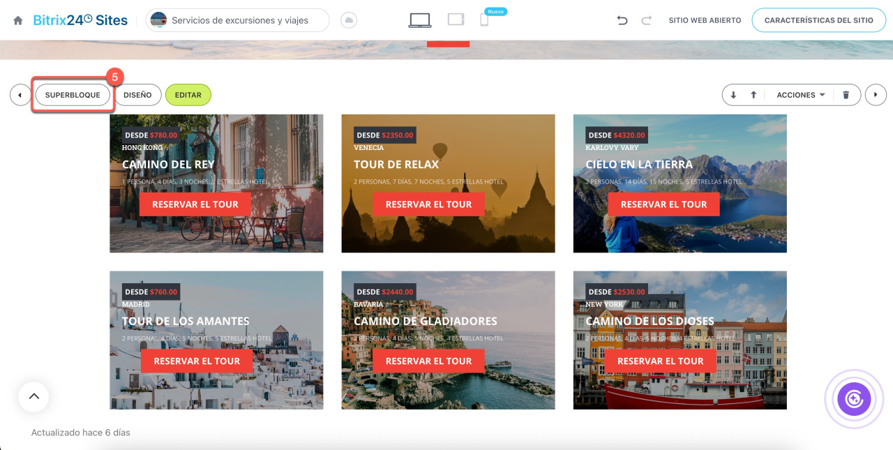 El superbloque es una función avanzada que te permite personalizar al máximo los bloques de tu sitio web. A diferencia de los bloques estándar, te permite añadir, eliminar y reorganizar elementos internos (como textos, imágenes, videos o botones) para crear diseños únicos y adaptados a tus necesidades.