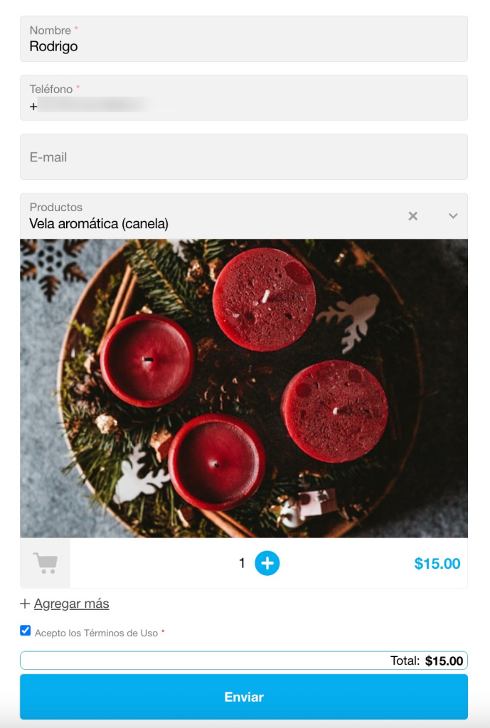 Productos con imagen pequeña. Agrega al formulario el nombre del producto y una imagen pequeña. Esto facilita que el cliente encuentre el producto deseado y realice el pedido.