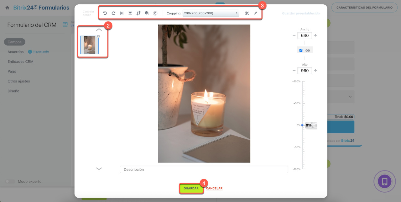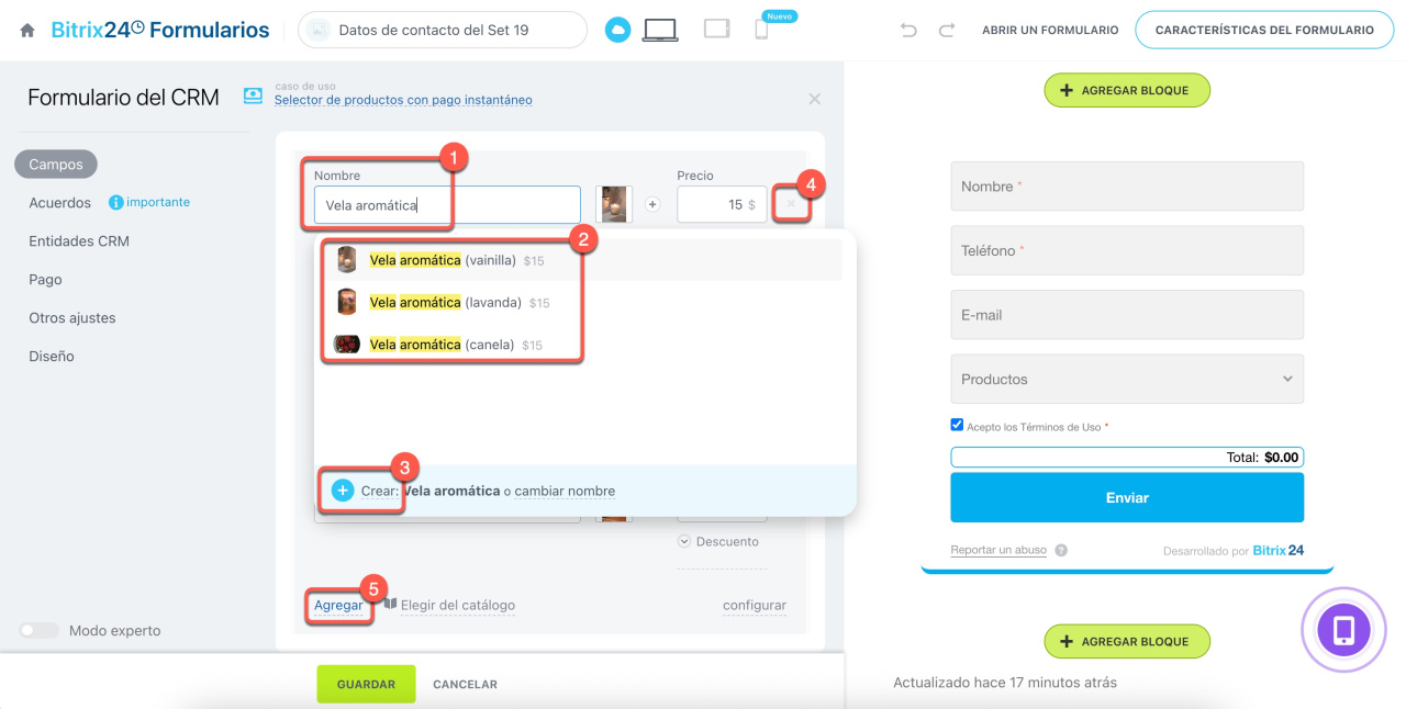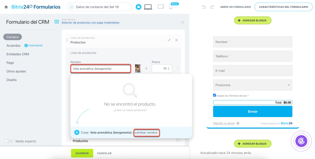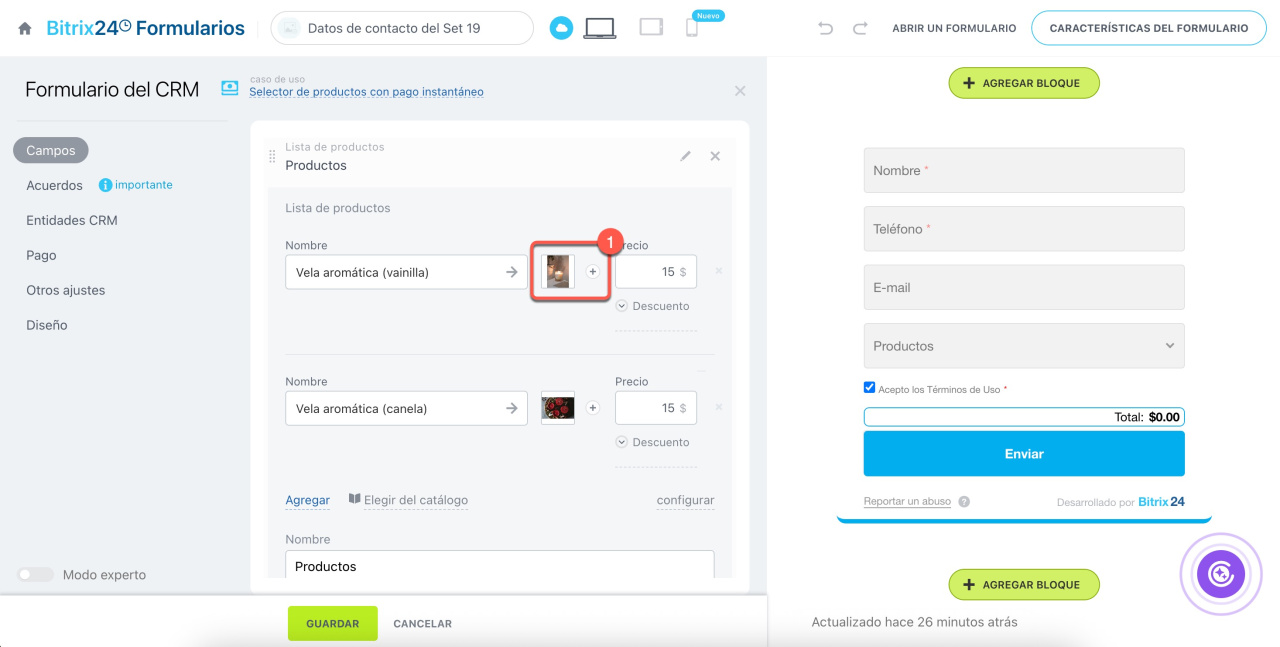 Modifica el nombre, la imagen y el precio del producto según las necesidades del formulario del CRM.