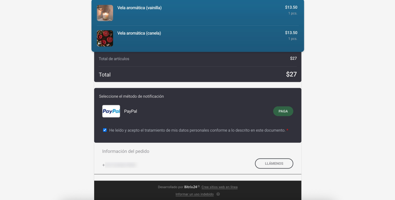 Las formularios del CRM en Bitrix24 permiten iniciar ventas en línea rápidamente sin necesidad de una tienda online. Puedes agregar productos al formulario, habilitar pagos y publicarlo en tu sitio web. Además, el enlace se puede enviar fácilmente al cliente por chat o correo electrónico. Cuando el cliente complete el formulario, los datos del pedido se guardarán en el CRM.