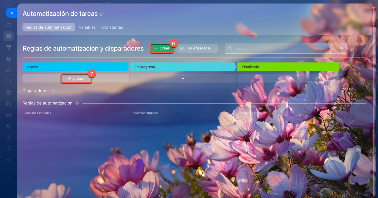 Para que el equipo no pierda tiempo en tareas rutinarias, se puede automatizar parte del trabajo con reglas de automatización y disparadores.