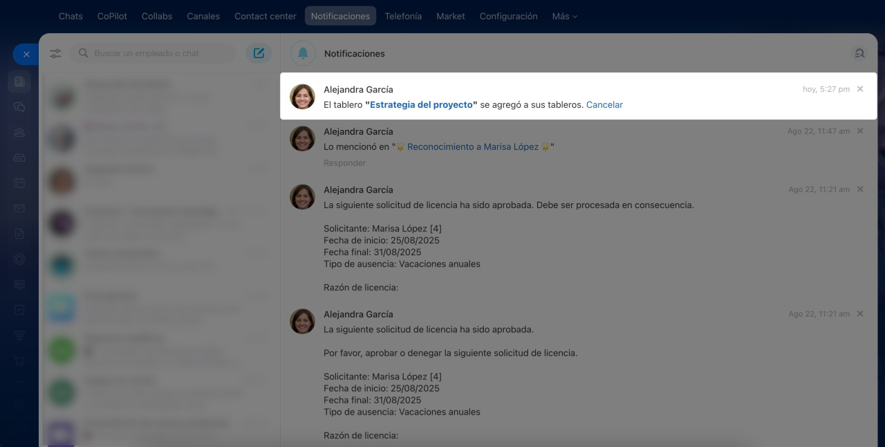 Cuando otorgues acceso al tablero, el empleado recibirá una notificación al respecto. Si decide cancelar el acceso, entonces no podrá acceder al tablero. Solo el propietario del tablero o un usuario con acceso completo podrá restaurarlo.
