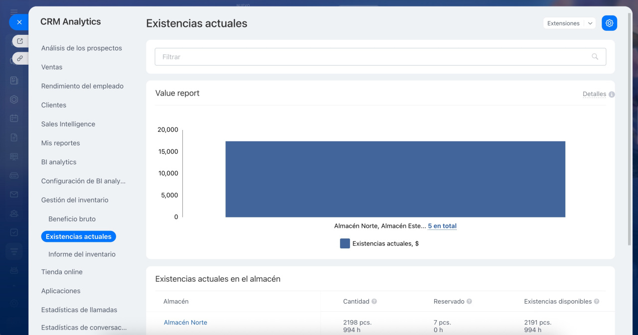 Este permiso de acceso permite a los empleados visualizar informes sobre existencias, movimientos de productos y beneficio bruto. Por ejemplo, un gerente de compras puede analizar la información de los almacenes, controlar los inventarios y planificar pedidos a proveedores.