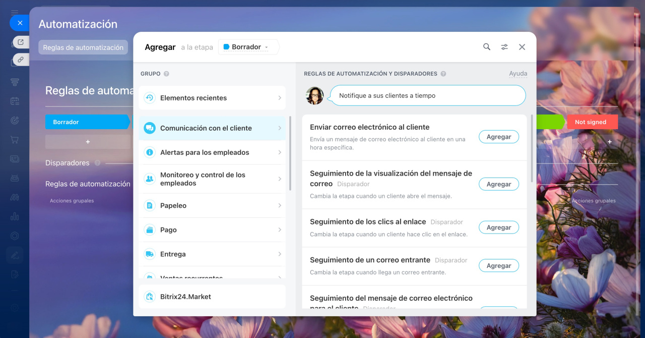- Puedes configurar reglas de automatización y disparadores para automatizar el proceso de firma de documentos con clientes.