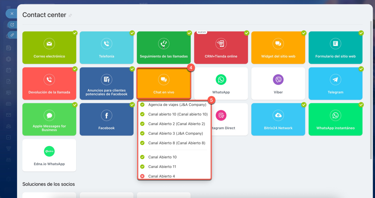 4-5. Elige un canal de comunicación y selecciona un canal abierto de la lista.