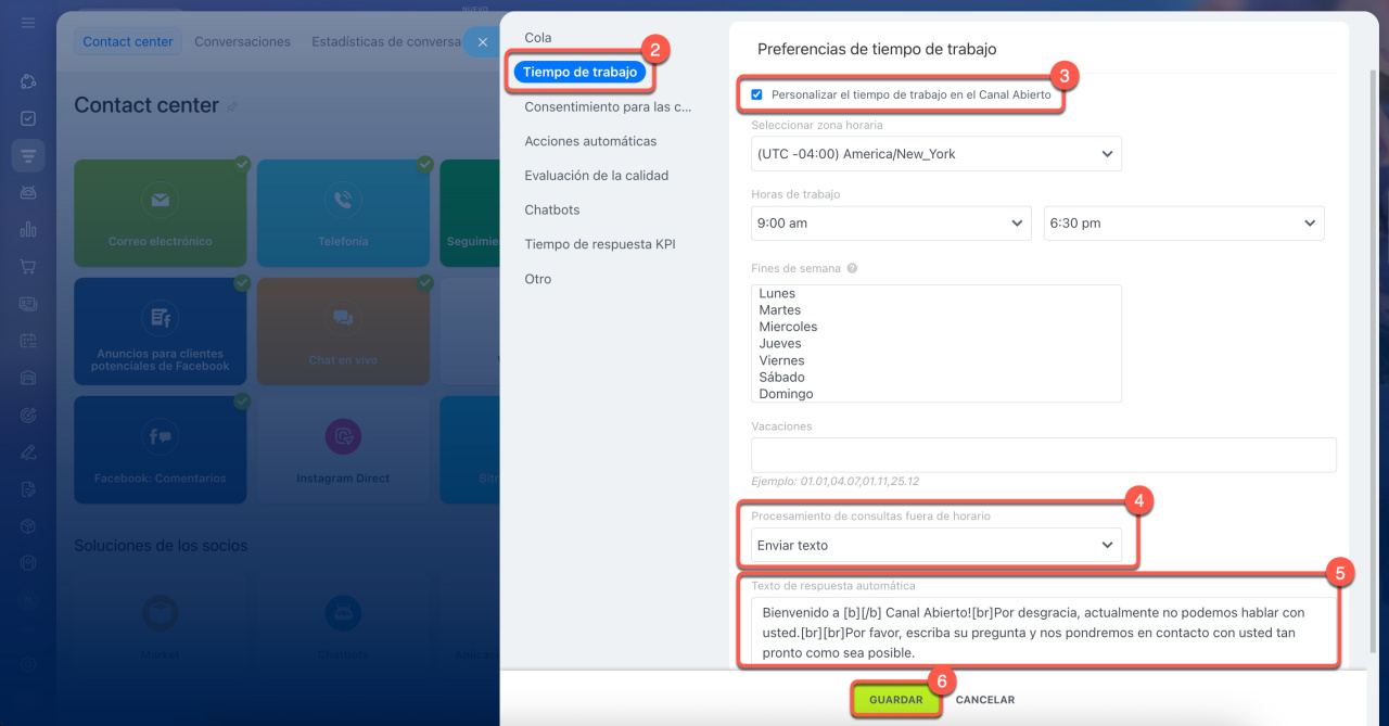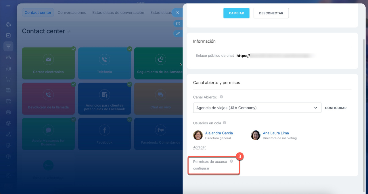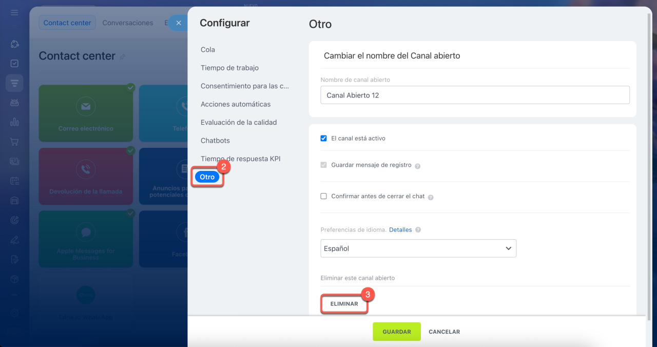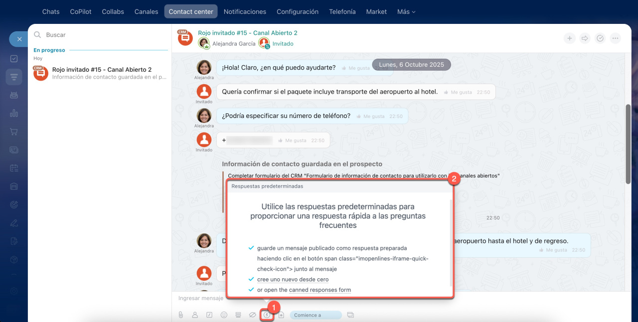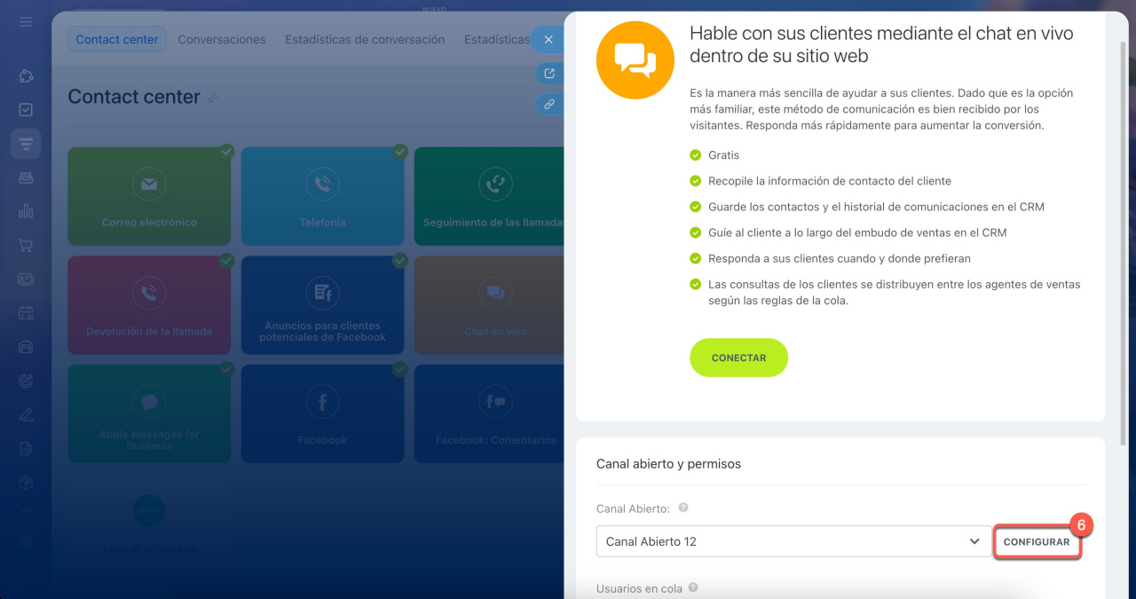 1. Ve al Contact center y abre cualquier canal de comunicación.