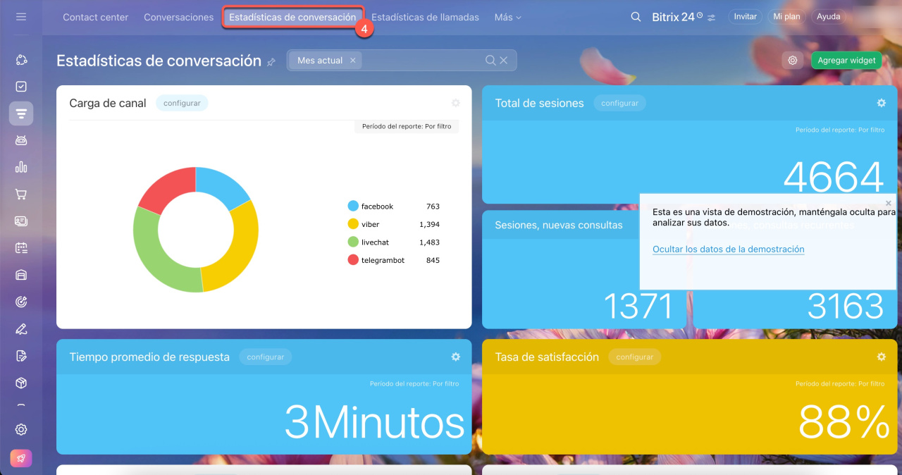 Accede a CRM > Clientes > Contact center > Estadísticas de conversación.
